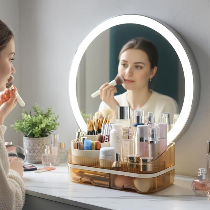 - Versatile Makeup Organizer Countertop Uses Multi-functional for cosmetics, skincare, or desk—elevate vanity style with organized countertop storage.