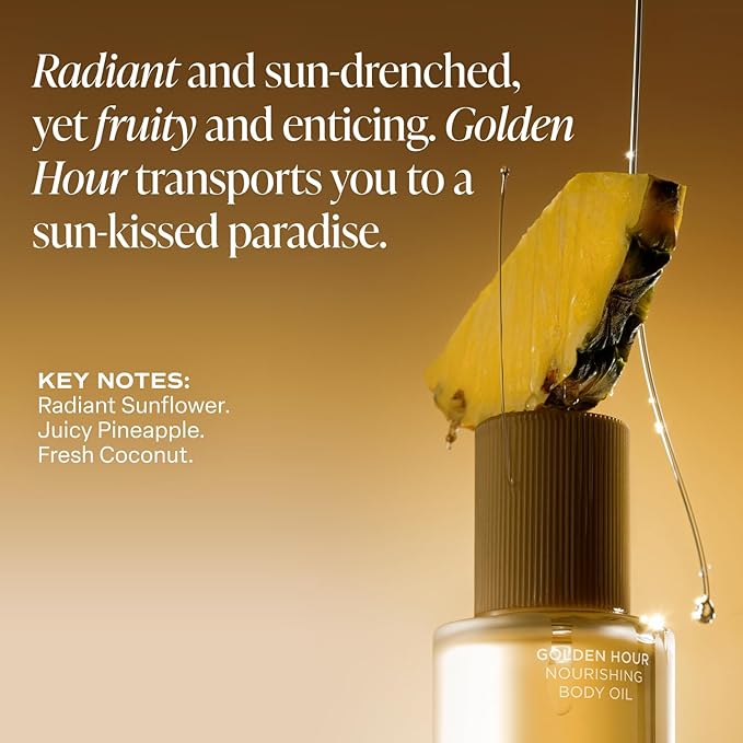 - GOLDEN HOUR FRAGRANCE: Radiant Sunflower, Juicy Pineapple, and Fresh Coconut is a bright and uplifting tropical blend, bursting with sunny florals, luscious fruit, and creamy, beachy warmth. Sun-drenched and enticing, Golden Hour transports you to a sun-kissed paradise