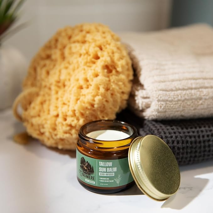 Tallow Sunscreen SPF 50 – Herb-Infused Balm with Non-Nano Zinc, Carrot Seed Oil & Grass-Fed Tallow – Natural Face & Body Moisturizer, Reef Safe, Organic Ingredients, Made in USA – 2.5x3 oz