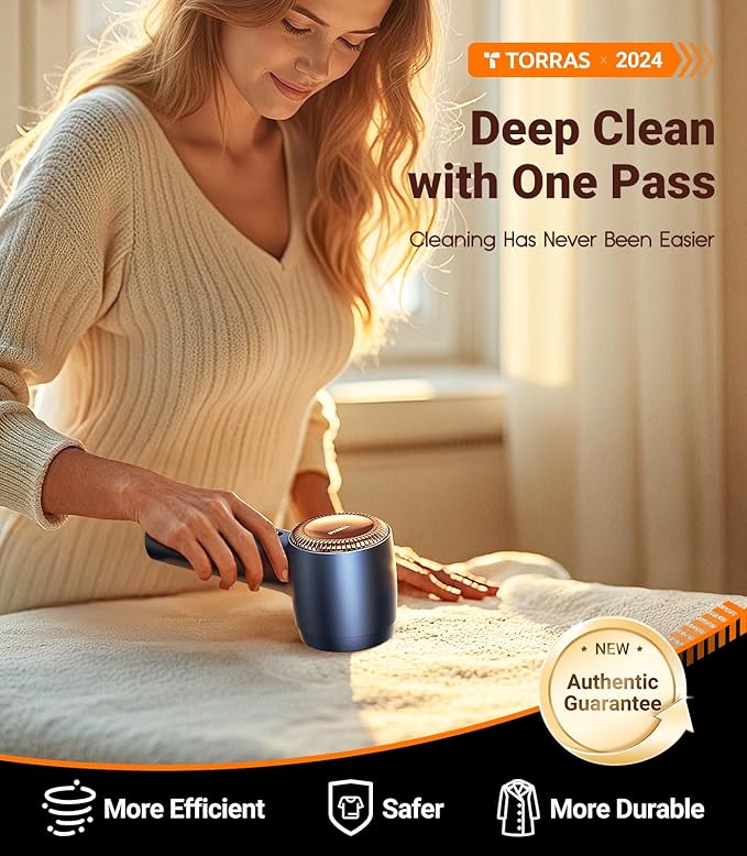 - [12 Times Removal Efficiency] Cleaning A sweater only takes ONE minute with TORRAS rechargeable fabric shaver. The turbine design increases the suction power of lint by 2 times. Six 45° blades increase the cutting efficiency by 3 times. The 11000 RPM motor doubled the cleaning speed. Each electric lint remover rechargeable contains numerous exquisite designs.