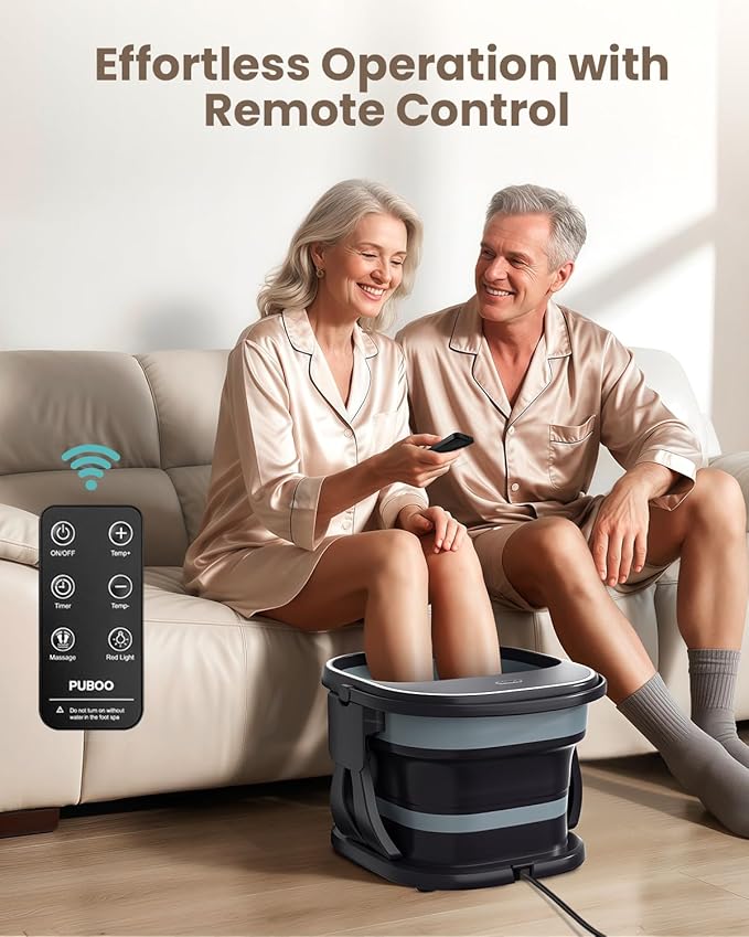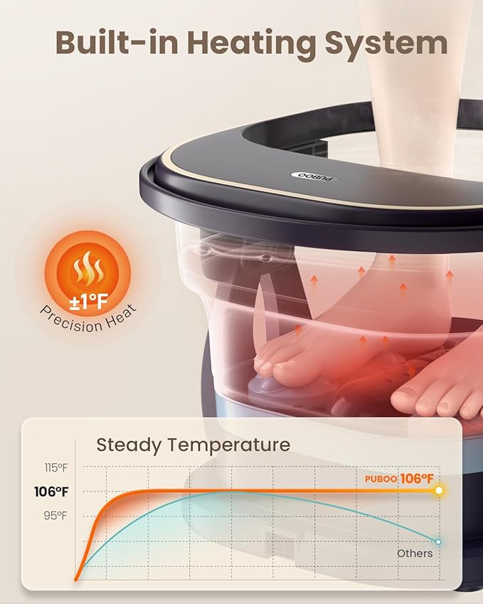 Puboo Collapsible Foot Spa Bath Massager with Heat, 95-115°F Precise Temp Control, Motorized Massage Rollers, Heated Foot Bath Soak Tub, Fits US Men’s Size 11, Gift for Christmas, Thanksgiving