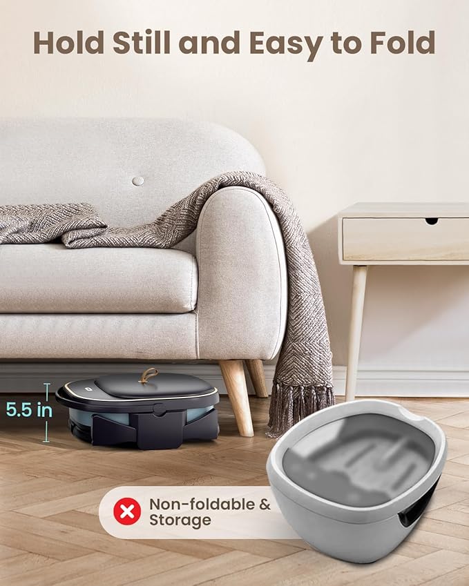 - Precise Heating Comfort – Adjustable 95-115 °F range with ±1 °F accuracy; bottom circulation system keeps this foot spa bath massager with heat evenly warm for a soothing soak. Minimum temperature set to 95℉ and heating can not be turned off