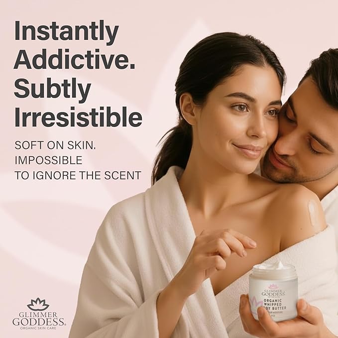Glimmer Goddess Organic Whipped Body Butter for Women - Moisturizer Cream with Shea & Cocoa Butter, Almonds & Coconut Oil - Mango Vanilla, 8oz