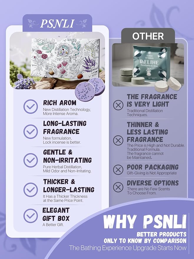 - Long-Lasting Fragrance Release - Our upgraded slow-diffusion formula ensures a long-lasting and evenly released aroma throughout the shower. Every shower steamer delivers a rich scent experience that lingers, leaving her refreshed and relaxed.