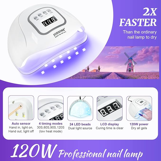 - Nail Lamp: This nail lamp has 4 curing modes; 30s, 60s, 90s and 120s. You can choose the curing time according to your situation. The nail lamp is lightweight and easy to carry and use.