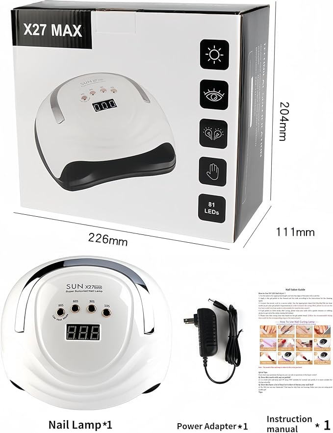 - 【Quick Drying & Save Your Time】 This 380W led uv nail lamp can dry the polishing agent in a very short time. Compared with ordinary lamp beads, 81 lamp beads full cover ensure to cure your nails evenly and quickly. Therefore, your nails will be cured quickly and properly. Enjoy your DIY nail art style anytime, anywhere with our UV gel nail lamp.