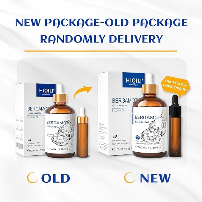 HIQILI Bergamot Essential Oil for Diffuser, Skin, Hair, DIY, 100% Pure & Natural - 3.38 Fl Oz (100 mL)