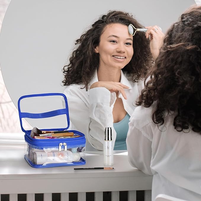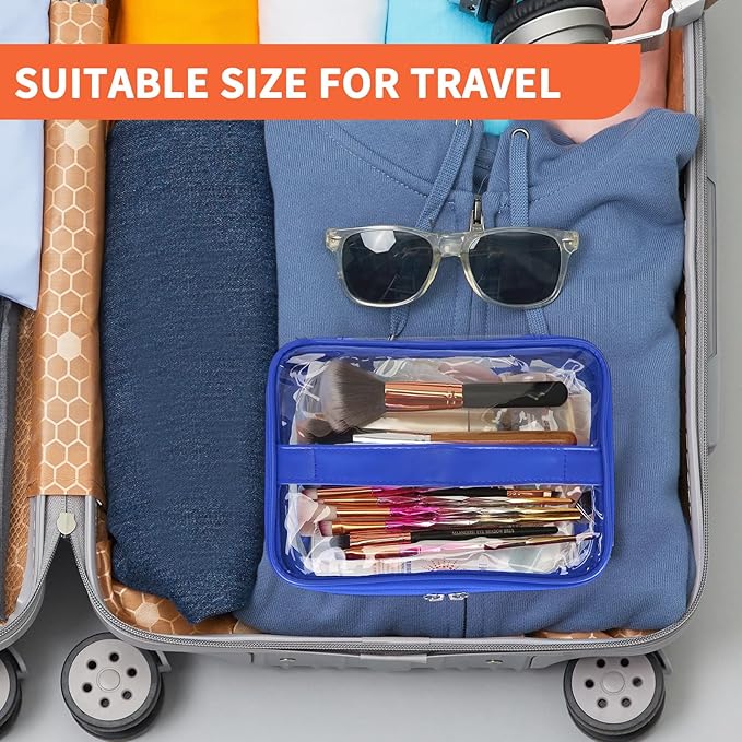 - QUALITY MADE - Made from durable and clear PVC material,Reinforced stitching seam and sturdy double zipper make sure this clear makeup bag can bear long term use without tearing on the seam