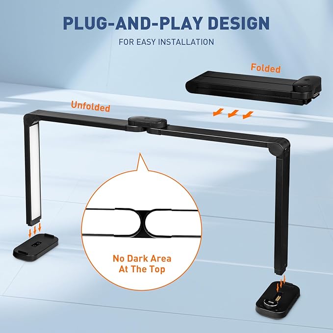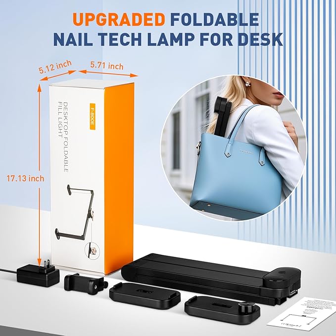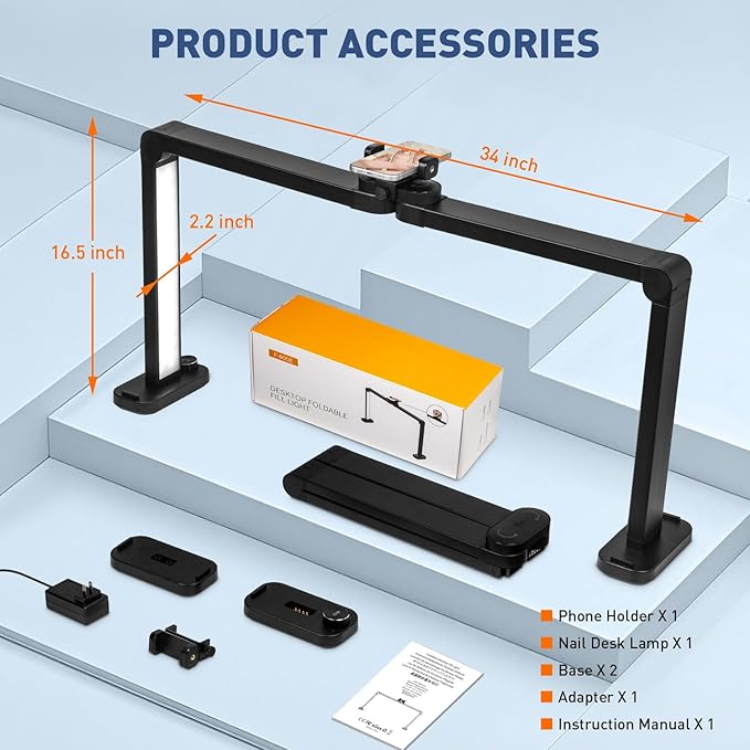 - Extra Large Portable Desktop Nail Lamp: The 34-inch large nail tech lamp for desk adopts a foldable design, which saves space and is easy to store. Half moon light for nail desk Suitable for scenes such as handicrafts, manicure, eyelashes, tattoos, embroidery, reading, painting, beauty professionals, etc.