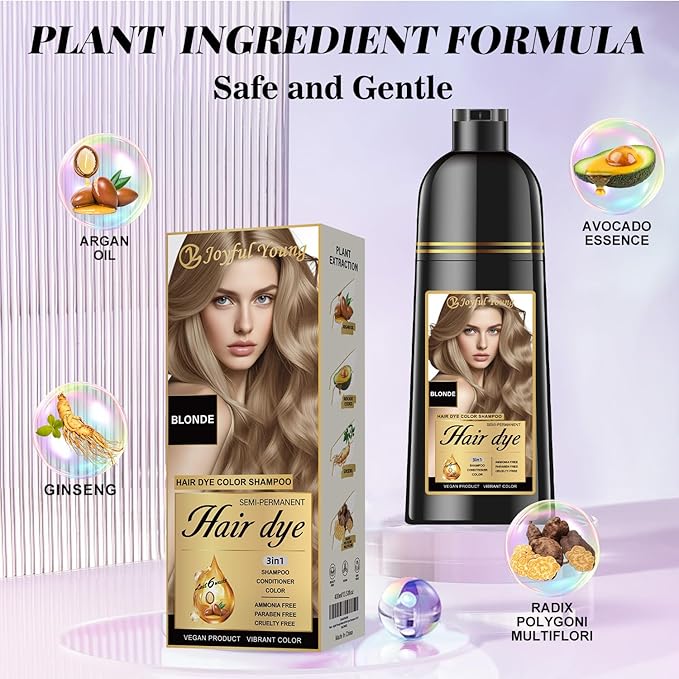 - SAFE ALL NATURAL HAIR DYE – Joyful Young color depositing shampoo organic hair color contains active natural hair dye ingredients - ANGELICA ARCHANGELICA, CHRYSANTHEMUM FLOWER, PUNICA GRANATUM FRUIT;