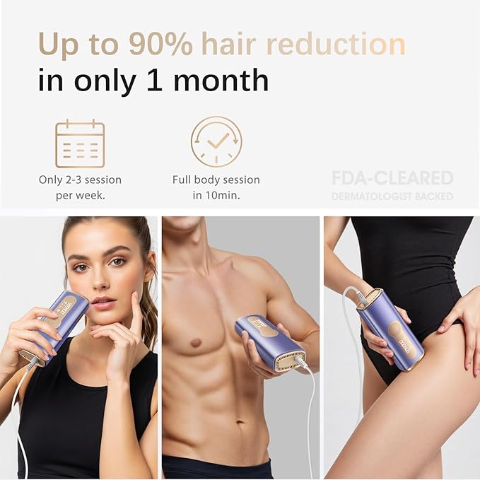 - ๐ LONG-LASTING RESULTS: IPL weakens follicles โ 85% users maintain results with 1-2 touch-ups/month. Great at-home alternative to salon laser and traditional hair removal methods. Suitable for multiple body areas including legs, arms, underarms, and bikini line, designed for both women and men.