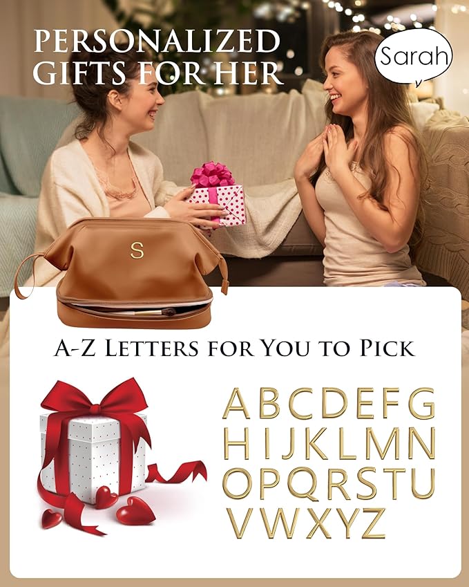 Teacher Gifts, Personalized Makeup Bag, Monogrammed Gifts, Initial Double Layer Cosmetic Bag with Makeup Brush Organizer, Travel Toiletry Bag, Gifts for Friends Female Mom, Teen Girl Gifts