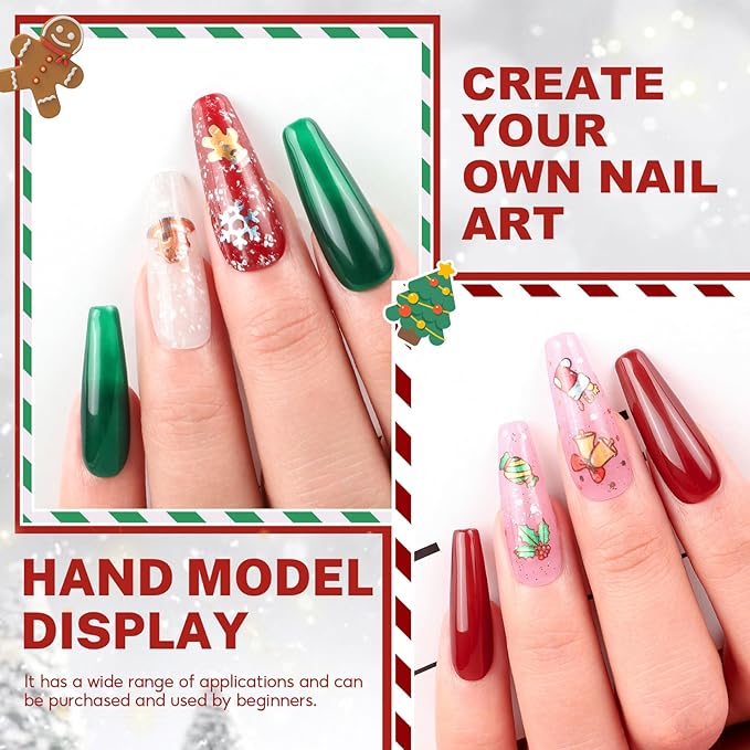 - Christmas Gel Nail Polish Set: This gel polish set has 10 colors gel polish, base top coat set. Includes popular colors for every occasion and season like pink, white, black, nude, which you can create more than 40 combinations with top coats for your different styles