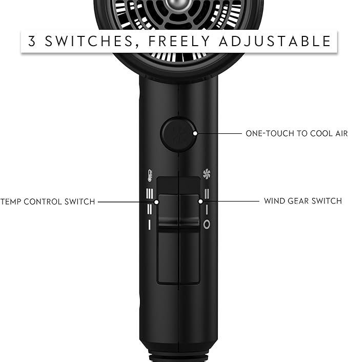 - All Hair Types: 1600 Watts(125V) for maximum drying power[1800W/240V]. This is 110V edition. 2 heat/ 2 speed settings for precise styling. And cold shot button releases cold air to lock in style.