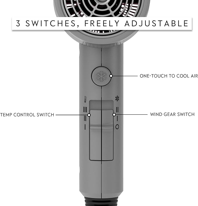 - All Hair Types: 1600 Watts(125V) for maximum drying power[1800W/240V]. This is 110V edition. 2 heat/ 2 speed settings for precise styling. And cold shot button releases cold air to lock in style.