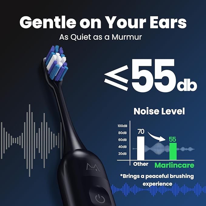 - A DEEPER CLEAN, A BRIGHTER SMILE: Powered by a next-gen brushless motor, Marlincare sonic electric toothbrush delivers 48,000 brush movements per minute to generate micro-bubbles that reach deep between teeth and gums, removing up to 10x more plaque for a fresher, healthier smile.