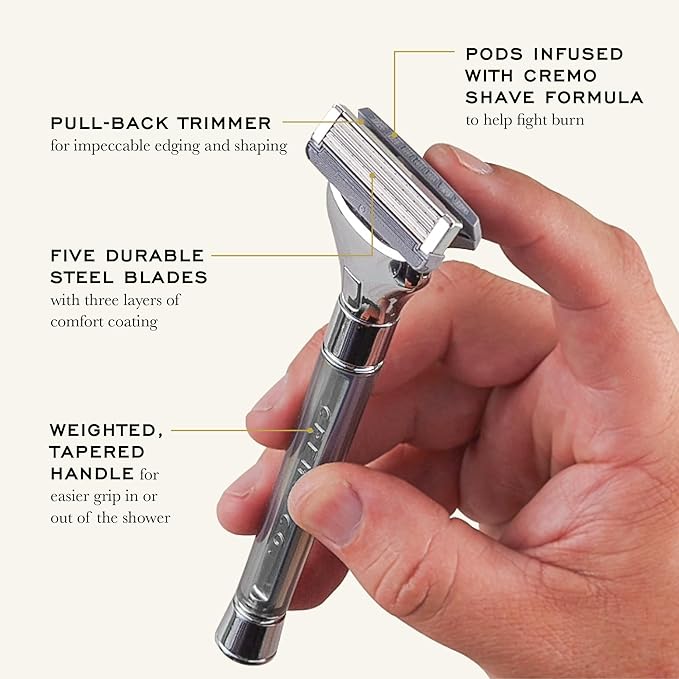 - Stay sharp with four replacement cartridges, infused with Cremo's unique shaving cream formula
