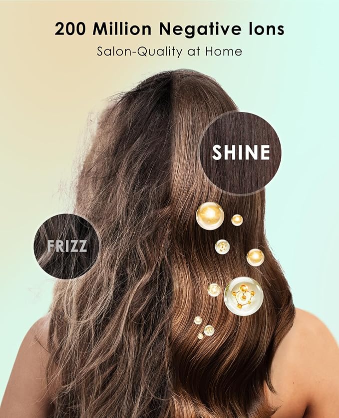 - Salon-Quality at Home: Our hair blower is not just a drying tool, but also a hair care expert. this dryer releases 200 million negative ions during the drying process, ten times more than regular ionic dryers. it helps to reduce static, lock in moisture, and leave your hair smooth and shiny. Experience salon-like results from the comfort of your own home.