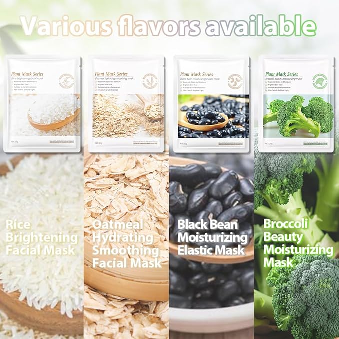 - 【12 Plant/Fruit Set】 Crafted from the finest natural ingredients, Aloe Vera、Pomegranate、Honey、Green Tea、Carrat、Tomato、Rice、Oatmeal、Black bean、Broccoli、Avocado、Cucumber, each component is carefully selected for its efficacy and compatibility with all skin types