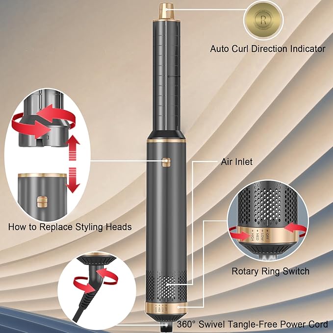 - Better Curling Mechanism -This 5 in 1 air styler equipped with adjustable heating function. Choose from multiple heat and speed settings to customize your styling experience. Choose the appropriate temperature for your hair. There is always a mode that suits you