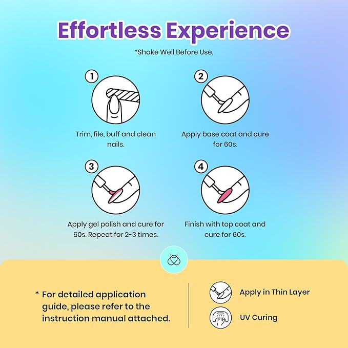 - Versatile Color Options: Gel nail polish beetles is available in a range of colors, include pastel pink blue purple and glitter, suitable for various occasions. Whether you prefer a classic solid color or want to experiment with vibrant combinations, you could enjoy a Safer, Healthier and Affordable Home Nail Experience with Families and Friends, Saving Time and Money. Say goodbye to the struggle of choosing colors and unleash your creativity! Beauty gift sets.
