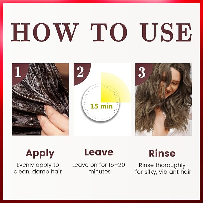 - Easy to Use: Apply amount of coloring conditioner to dry hair with gloves, then sit for 15-20 minutes, rinse it off and hair drying. Want the color to stand out better, try 2-3 times.(Tips: Warmth can open the hair cuticles for the best in total absorption, so after applying it, cover hair with a shower cap and use a blow dryer on medium heat to soak up more pigment.)