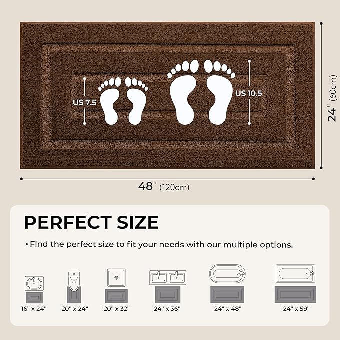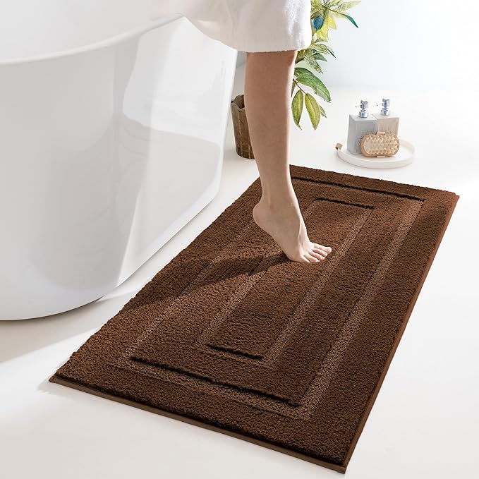 GRANNY SAYS Bathroom Rugs Non Slip 24" x 48", Bath Mats for Bathroom, Super Soft and Water Absorbent, Microfiber Washable Bath Rugs for Floor, Tub and Shower, Brown