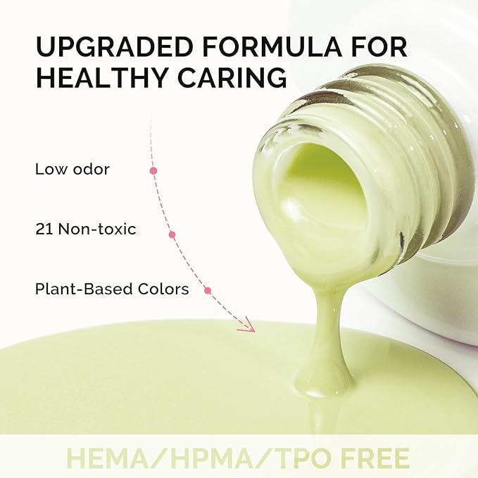- Upgraded 3 Free Formula: 3 Free- Free of HEMA, HPMA, TPO. This gel nail polish is safer and less likely to trigger allergies. With 21 non-toxic ingredients(Free of 21 harmful chemicals such as heavy metals), this gel polish reduces the risk of nail damage. The low odor is very suitable for those who are sensitive to strong smells, ensuring a safer and healthier manicure experience.