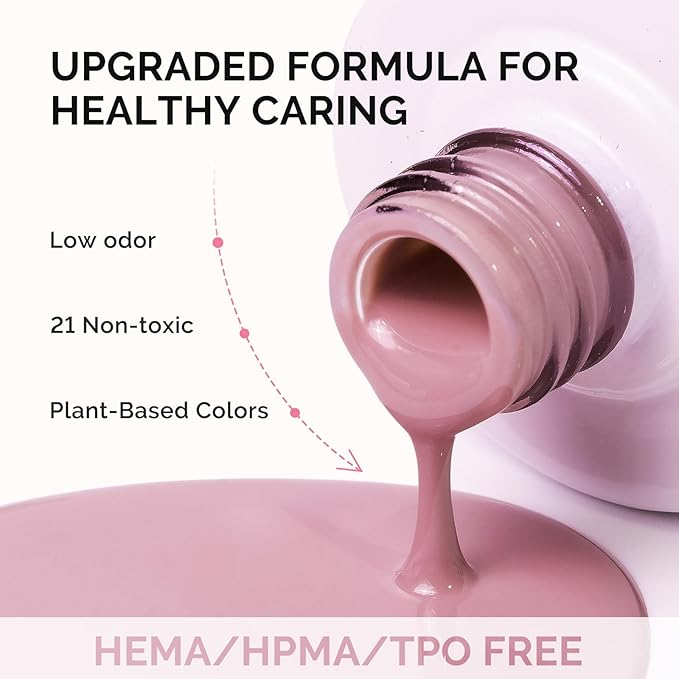- Upgraded 3 Free Formula: 3 Free- Free of HEMA, HPMA, TPO. This gel nail polish is safer and less likely to trigger allergies. With 21 non-toxic ingredients(Free of 21 harmful chemicals such as heavy metals), this gel polish reduces the risk of nail damage. The low odor is very suitable for those who are sensitive to strong smells, ensuring a safer and healthier manicure experience.