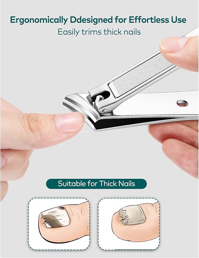 - 【Ergonomic Design】Ergonomically designed handle, energy-saving, comfortable to hold, easy to control. The nail clipper has a curved blade that adapts to the shape of the toenails, which can be cut easily and precisely, providing a professional grooming experience.