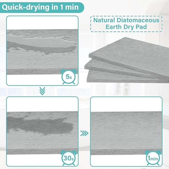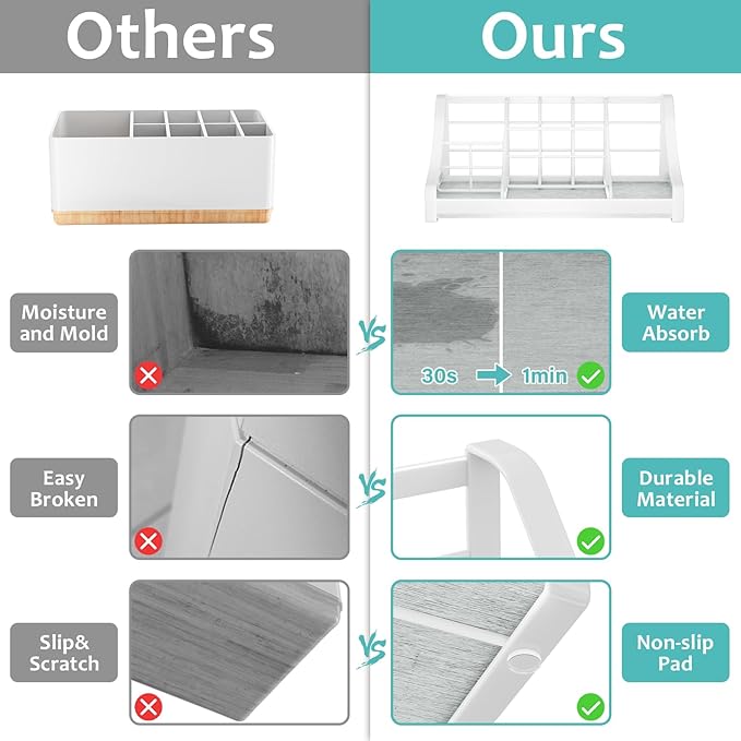 - Fast Drying Bathroom Countertop Organizer: This toothbrush and toothpaste holder comes with instant dry stone pad, which is made from natural diatomaceous earth ,well performace for its exceptional water adsorption capabilities and reliability. They can automatically absorbs water and dries in a few minutes. It efficiently maintain a hygienic environment by preventing the buildup of water, moisture and mold. This diatomite stone caddy keeps your bathroom countertop accessories more dry and tidy .No longer need to constantly open to clean the bottom moisture or mould like other holders.