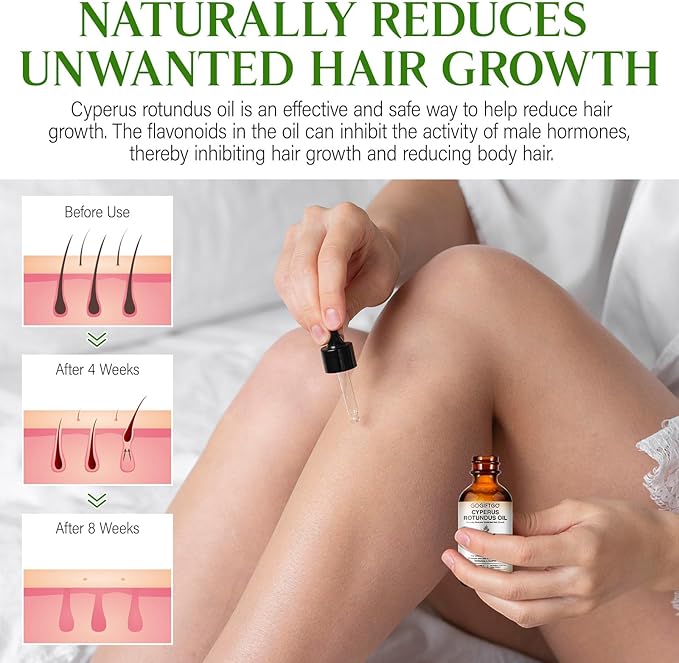 - Multi-Care: The versatile Cyperus Oil can be applied directly to the parts where you do not want hair to grow. It not only helps to reduce body hair, but can also be applied directly to the skin for massage, which helps to nourish and rejuvenate the skin. It is a part of your daily skin care routine