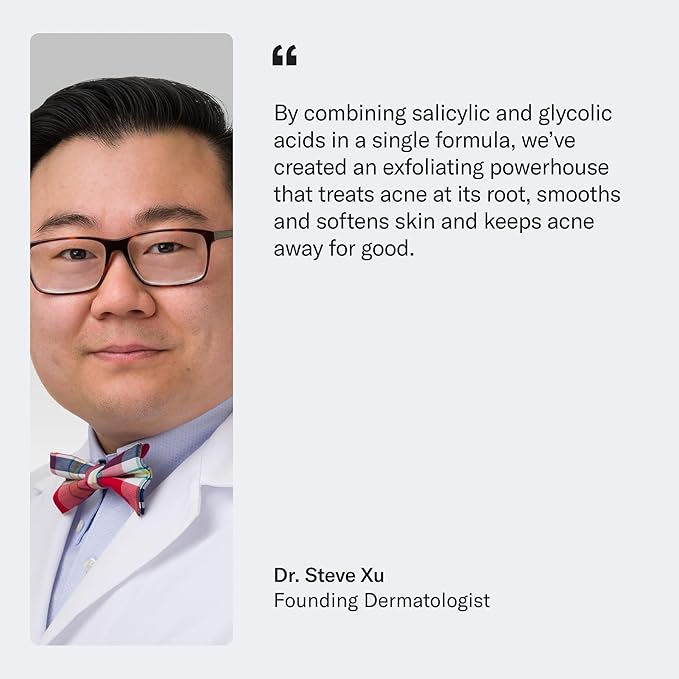 - SKINCARE SCIENCE THAT WORKS: Moisturizes skin, soothes irritations and reduces redness. Derm-grade formula that is a luxurious experience for men or women. Unique AHA+BHA formula combines the exfoliating powers of 2% Salicylic Acid and 1.5% Glycolic Acid to clear existing acne and prevent new breakouts from forming.