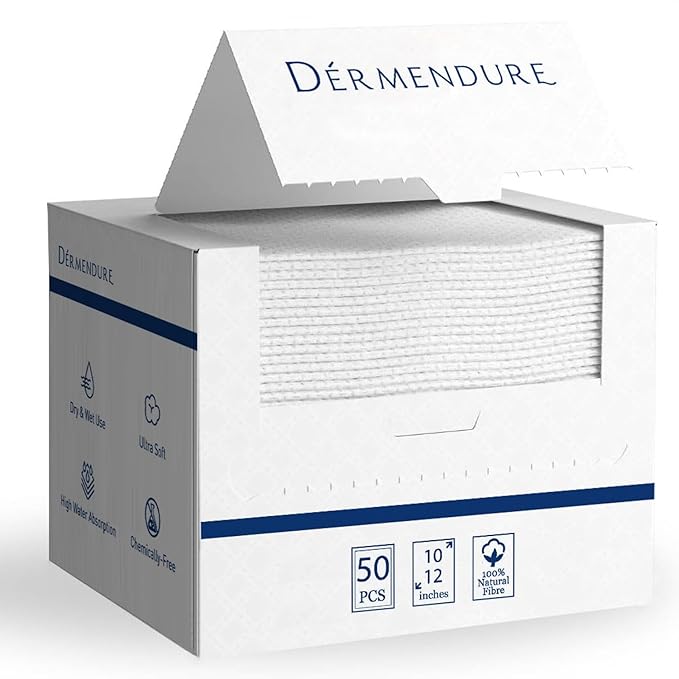 Disposable Face Towels, Disposable Face Towelette, Dry Wipes, Extra Large Size, 100% Natural Fibres, Super-Soft, Extra Absorbent, Makeup Remover, 100% Biodegradable, 50 PCS