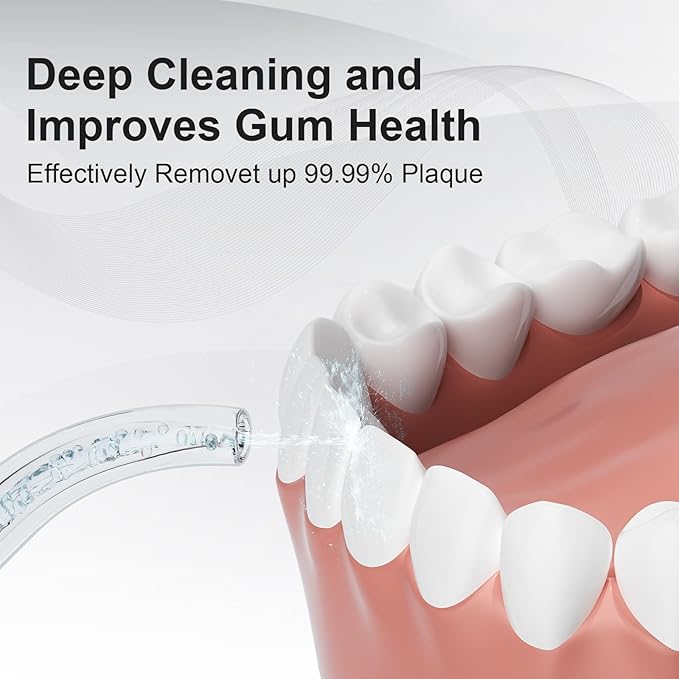 - 【Efficient Cleaning Technology】BUZHIWU water flosser can effectively clean the gaps between teeth, remove small food residues, reduce gum bleeding, and improve gum swelling and pain. In addition, it can also be used for cleaning braces and dental implants. It can remove 99% of tooth stains and solve oral problems such as bad breath.