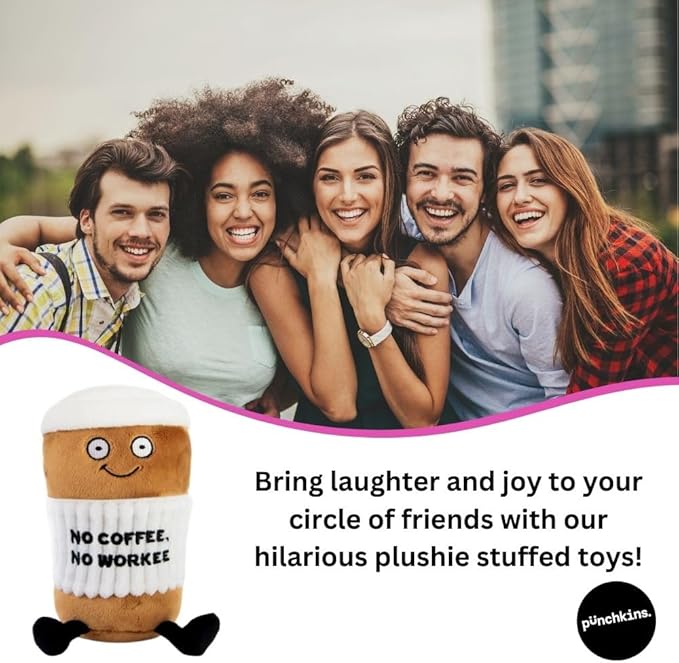 Punchkins Coffee Plushie - No Coffee, No Workee Sassy Cup Plush, Gift for Coworkers, Sassy Food Plush Toy for Gifting
