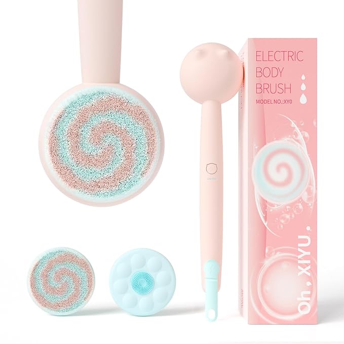 - Chic & Functional Design: This electric body brush features a playful yet elegant design with cute cat ears, lollipop-textured bristles, and a soft macaron color palette. The long ergonomic handle provides a comfortable grip for easy reach of the back and body. Powered by a multi-speed motor, this shower brush delivers a soothing cleanse that is both effective and relaxing, transforming your daily shower into a delightful self-care ritual