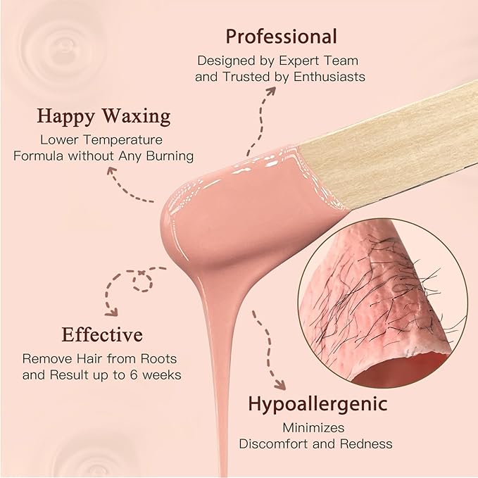 - Easy to Use & Clean: These hard wax beads are designed for hassle-free application and cleanup. Simply melt, apply, and remove for smooth skin with no sticky residue left behind. Perfect for both beginners and professionals, this wax makes hair removal quick, convenient, and mess-free!