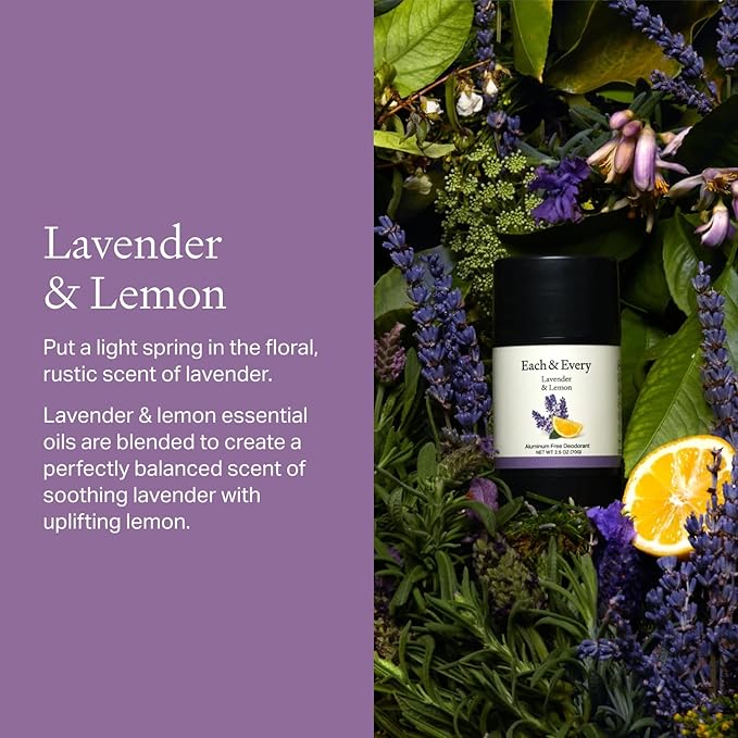 - Two Refreshing Scents - This set includes five tiny, travel-sized sticks of our all natural deodorant in two different scents. The first energizing scent blends citrus and vetiver essential oils to create a refreshing, uplifting aroma. Next, soothing lavender gives a rustic, floral scent to the uplifting aroma of classic bright lemon.