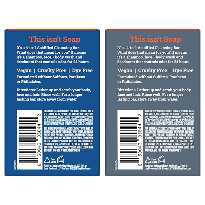 - WORKS BETTER THAN SOAP - Traditional soap cleans your skin but raises its pH, which can lead to faster odor development. Mando Acidified Cleansing Bar is formulated with mandelic acid to help maintain a balanced pH, keeping skin fresh and hydrated.
