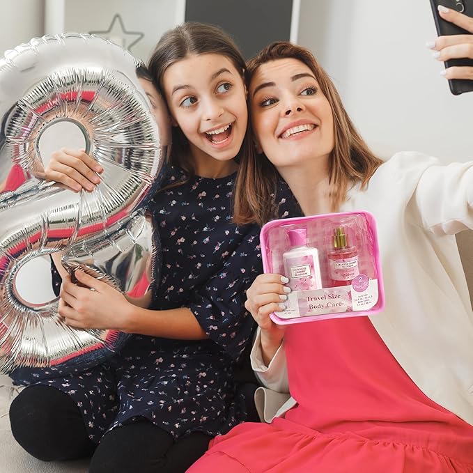 - Elegant Gift-Ready Packaging with Premium Drawstring Bag:Presented in a beautifully designed reusable drawstring bag, this bath and body gift set combines practicality and luxury. The soft, satin-finish bag features delicate cherry blossom patterns, perfect for birthdays, Mother’s Day, or Valentine’s Day. An elevated unboxing experience that makes it a thoughtful gift choice for women who appreciate pampering skincare essentials