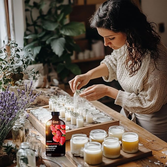 - Premium Strawberry Essential Oil: Enjoy the refreshing and soothing aroma of Strawberry Essential Oil, FRAOIL Strawberry Essential Oil is an upgraded and enhanced formula that has been sorted and bottled through a rigorous and standardized process to ensure the highest quality ingredients. Whether you use it for home aromatherapy or perfumery, this Strawberry essential oil will bring you a relaxing atmosphere.