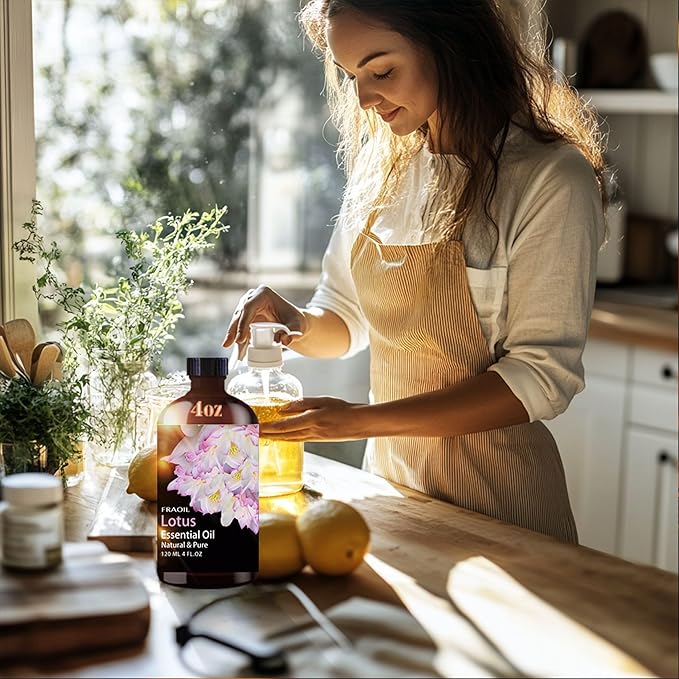 - Premium Lotus Essential Oil: Enjoy the refreshing and soothing aroma of Lotus Essential Oil, FRAOIL Lotus Essential Oil is an upgraded and enhanced formula that has been sorted and bottled through a rigorous and standardized process to ensure the highest quality ingredients. Whether you use it for home aromatherapy or perfumery, this Lotus essential oil will bring you a relaxing atmosphere.