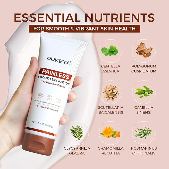 - OUKEYA - Premium Hair Removal for All Skin Types: OUKEYA offers high-quality hair removal solutions designed for both men & women of all skin types. Combining powerful efficacy with gentle, organic ingredients, our painless natural remove cream provides a safe and effective way to enhance your natural beauty effortlessly.