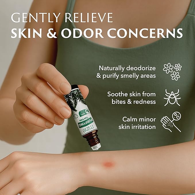 - TEA TREE OIL: Our Tea Tree Essential Oil Roll-On is made from pure and natural steam-distilled tea tree oil derived from fresh tea tree leaves. This blend is free from additives, ensuring a pure, gentle, and natural essential oil