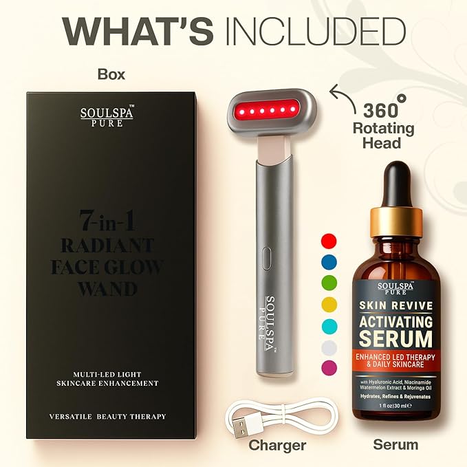 - MULTI-FUNCTION DESIGN: 7-in-1 facial wand combines various beauty technologies to enhance your skincare routine and promote the appearance of healthy skin.