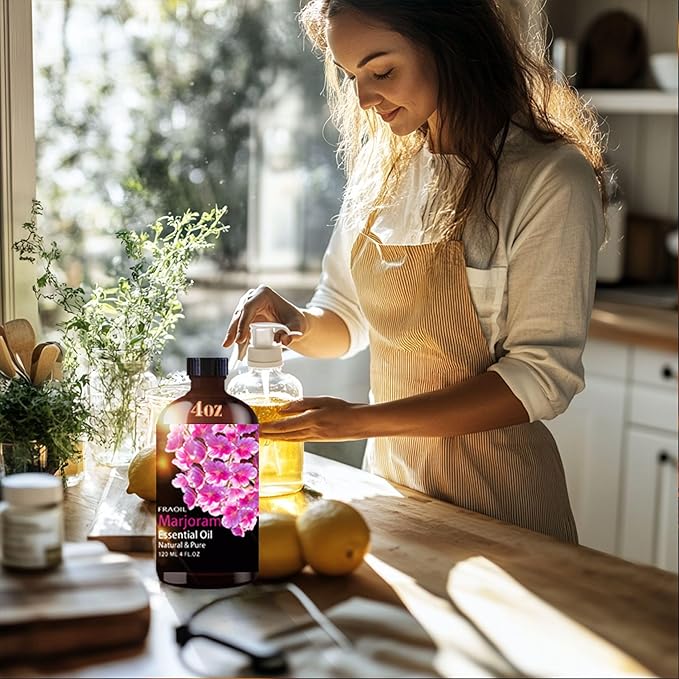 - Premium Marjoram Essential Oil: Enjoy the refreshing and soothing aroma of Marjoram Essential Oil, FRAOIL Marjoram Essential Oil is an upgraded and enhanced formula that has been sorted and bottled through a rigorous and standardized process to ensure the highest quality ingredients. Whether you use it for home aromatherapy or perfumery, this Marjoram essential oil will bring you a relaxing atmosphere.