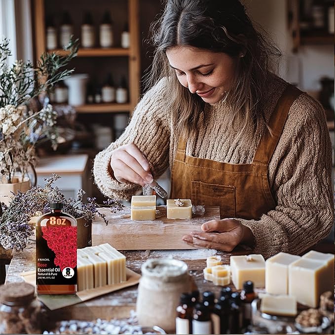- Premium Rose Essential Oil: Enjoy the refreshing and soothing aroma of Rose Essential Oil, FRAOIL Rose Essential Oil is an upgraded and enhanced formula that has been sorted and bottled through a rigorous and standardized process to ensure the highest quality ingredients. Whether you use it for home aromatherapy or perfumery, this Rose essential oil will bring you a relaxing atmosphere.