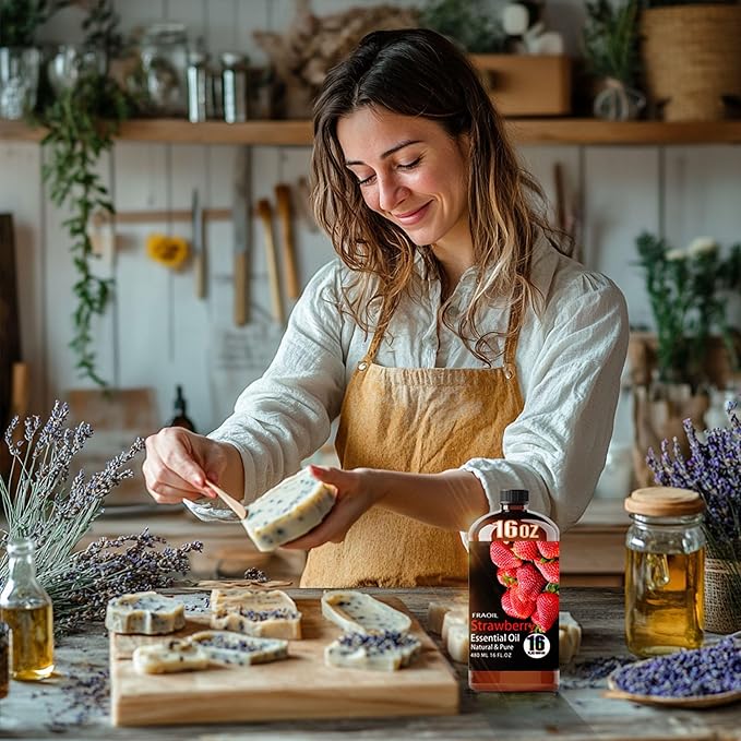 - Premium Strawberry Essential Oil: Enjoy the refreshing and soothing aroma of Strawberry Essential Oil, FRAOIL Strawberry Essential Oil is an upgraded and enhanced formula that has been sorted and bottled through a rigorous and standardized process to ensure the highest quality ingredients. Whether you use it for home aromatherapy or perfumery, this Strawberry essential oil will bring you a relaxing atmosphere.