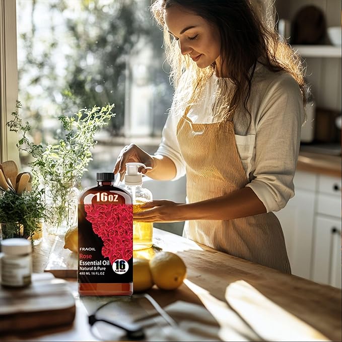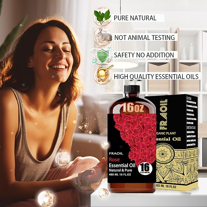 - Premium Rose Essential Oil: Enjoy the refreshing and soothing aroma of Rose Essential Oil, FRAOIL Rose Essential Oil is an upgraded and enhanced formula that has been sorted and bottled through a rigorous and standardized process to ensure the highest quality ingredients. Whether you use it for home aromatherapy or perfumery, this Rose essential oil will bring you a relaxing atmosphere.